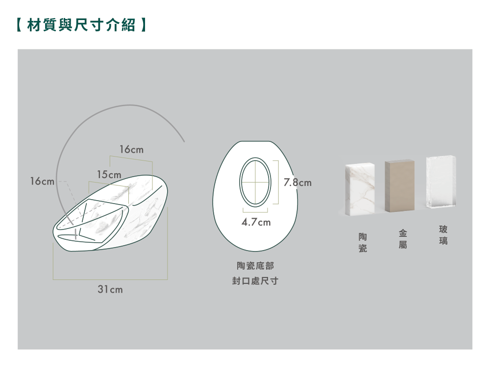 - 本產品局部以陶瓷製作,釉面上小氣孔或小黑點純屬陶瓷本身特性,均為正常現象。