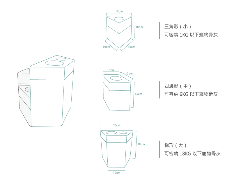 適用:一只 18KG 或兩只 9KG 以下寵物骨灰