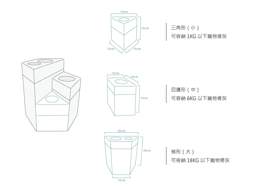 三角形 ( 小 ):可容納 1KG 以下寵物骨灰
